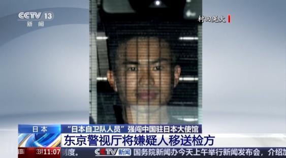 另据报道,强行闯入中国驻日本大使馆的陆上自卫队嫌疑人为村田晃大,三等陆尉。26日,日本东京警视厅表示,以涉嫌非法侵入建筑物为由,将村田晃大送交检方。