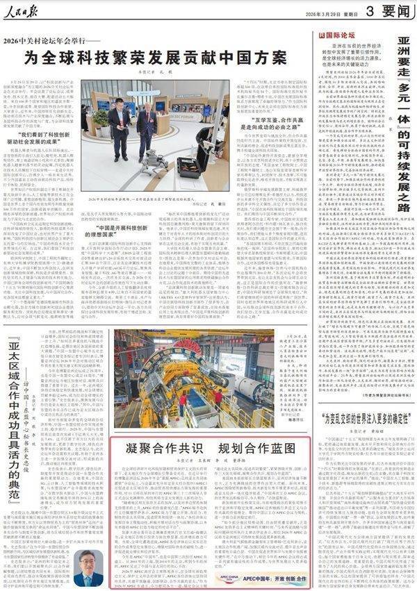 在全球经济碎片化风险加剧和贸易保护主义抬头的背景下,亚太地区作为全球增长引擎备受关注。在近日举行的博鳌亚洲论坛2026年年会“重振APEC:迈向亚太共同体愿景”分论坛上,与会嘉宾充分肯定亚太经合组织(APEC)在促进亚太区域合作、推动贸易投资增长方面发挥的重要作用,对11月将在深圳举行的APEC第三十三次领导人非正式会议充满期待,相信其将为亚太发展注入新的动力。