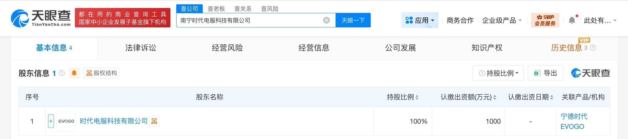南方财经3月23日电,天眼查工商信息显示,近日,南宁时代电服科技有限公司成立,法定代表人为潘登,注册资本1000万人民币,经营范围为新兴能源技术研发。股东信息显示,该公司由宁德时代(300750)旗下时代电服科技有限公司全资持股。